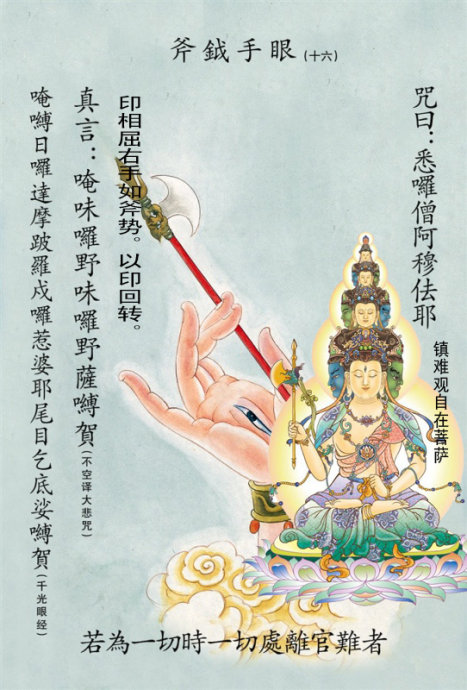 16、若为一切时处好离官难者,当于钺斧手;(当修钺斧法)