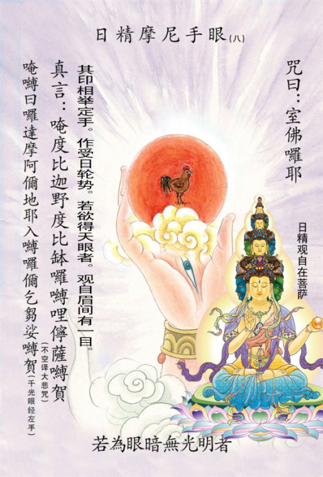8、若为眼闇无光明者,当于日精摩尼手;(当修日精摩尼法)
