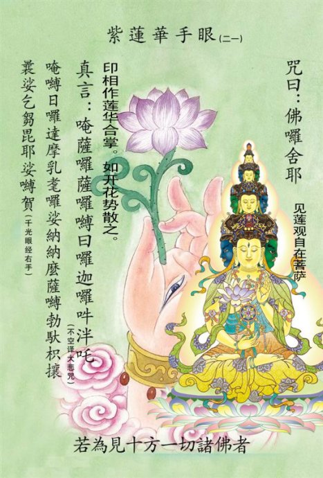 21、若为面见十方一切诸佛者,当于紫莲华手;(当修紫莲华法)