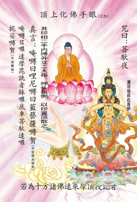 39、若为十方诸佛速来摩顶授记者,当于顶上化佛手;(当修顶上化佛法)
