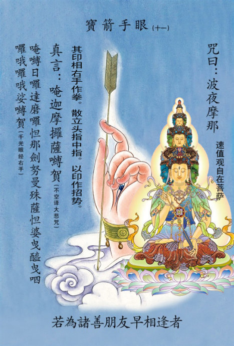 11、若为诸善朋友早相逢者,当于宝箭手;(当修宝箭法)