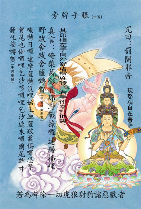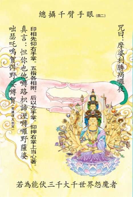 「若有一个人修大悲法,每天念〈大悲咒〉一百零八遍,再能修四十二手法,这是相得益彰,有双倍的功效,能有这两种的力量!」这叫一百一千十王欢。