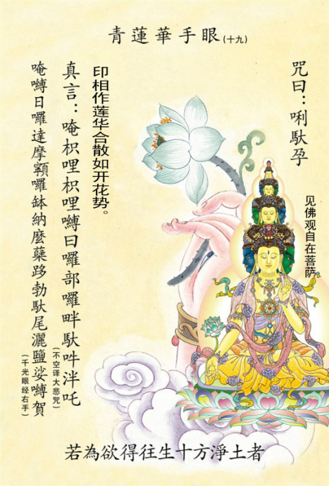19、若为欲得往生十方净土者,当于青莲华手;(当修青莲华法)