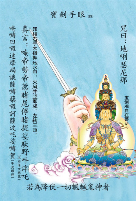 4、若为降伏一切魍魉鬼神者,当于宝剑手;(当修宝剑法)
