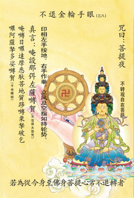 38、若为从今身至佛身,菩提心常不退转者,当于不退金轮手;(当修不退金轮法)