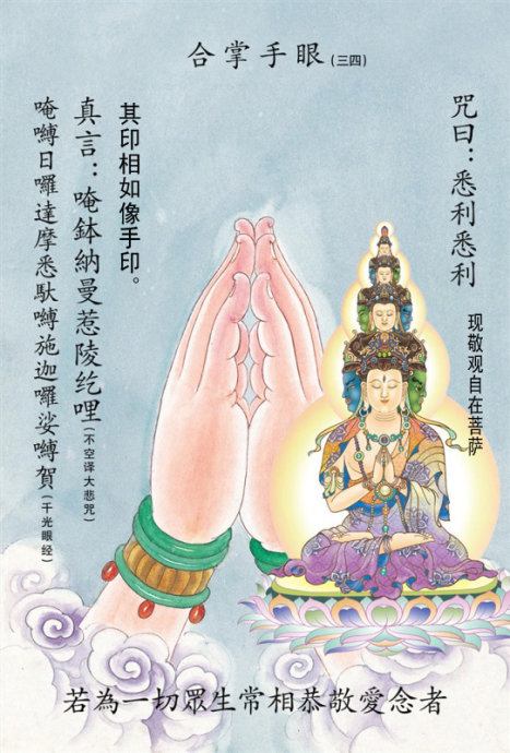 34、若为一切众生常相恭敬爱念者,当于合掌手;(当修合掌法)