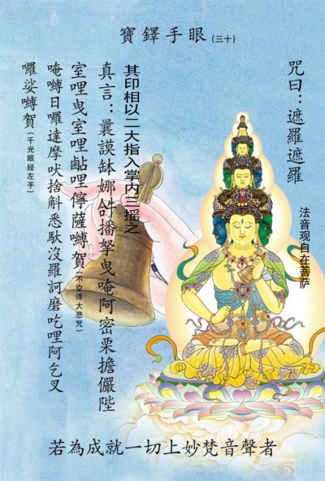 30、若为成就一切上妙梵音声者,当于宝铎手;(当修宝铎法)
