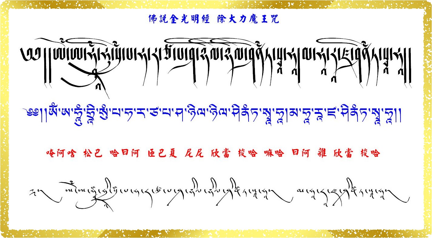 佛说金光明经 除大力魔王咒 (最大的魔王就是我们每个人心中的俱生生相无明)