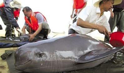 最近,一张照片吸引了人们的眼球:一条正在接受专家检查的长江豚的脸上挂着一行泪。原来,由于连日干旱,长江中下游水位业已降至历史最低水平,而位于湖北省石首市的天鹅洲国家级长江豚类保护区的水位、水体面积也是如此,湖区大部份深不足3米,个别地方甚至低于2米。或许长江豚的泪水是在为自己未来的命运担忧?亦或在控诉人类对环境无休止地破坏?