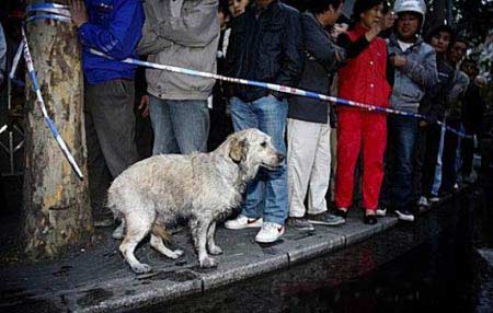 不久前,重庆媒体就报导了一只被搬迁的主人遗弃的叫皮皮的小狗。它每天都呆在主人原先居住的路口等待主人的归来,虽然很饿,但却不肯离开,据说它时常流出眼泪。而2010年11月上海高楼大火之际,一只金毛犬也是在大楼外不吃不喝地等待自己的主人,而且一直在流泪。这只“守望犬”很快成为了网络明星,并最终得以找到主人。