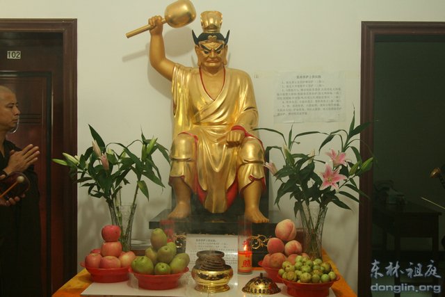 庙里面过年过节是很讲究的,好像每一个节日都有一定的仪式。这可以追溯到百丈清规,那上面就有很大的篇幅写如何过某某节日。今年的小年是在老祖寺过的,很有意思的是,老祖寺保留了过小年送灶神的仪式。我们在这天晚上打完夜巡板后(寺院打完夜巡板就该休息睡觉了),集中到大寮的监斋菩萨像前,按照附件中的仪轨,做了送灶神的仪式。