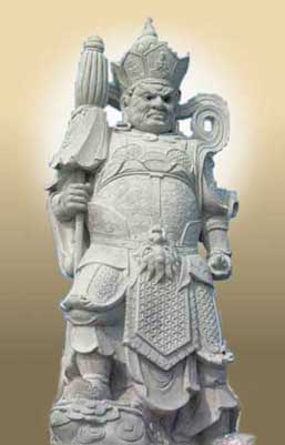 旁边的护法,分东、南、西、北四大天王。东方天王,代表负责任,叫持国天王(持是保持,国是国家)。主持一个家庭的事务,我们叫持家。主持一个公司的事务,是总经理、董事长。主持一个国家的事务,是帝王、是总统。要怎样去做呢?一定要负责尽职。每一个人在这社会上,都有他一份的职责,能把自己本分的职责,尽心尽力做到圆满,这个社会和谐,国家一定富强。持国天王教给我们这个事理。