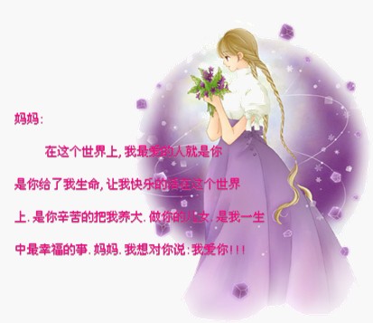 母亲是关爱,母亲是宽容,母亲是温暖,母亲是你痛苦时最心痛的那个,母亲是你高兴是最开心的那个,母亲是你无助时伸出手给你力量的那个,祝每一位伟大的母亲天天快乐.