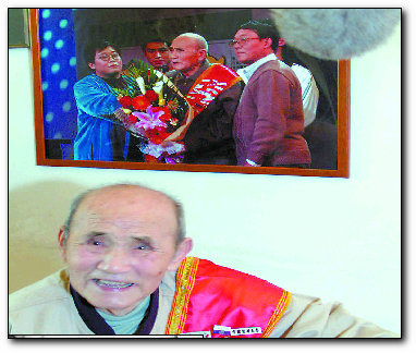 见记者来访,躺在床上的他费力地支起身子。女儿白金凤凑近他耳边,大声说:「上海的记者看您来了!」老人的眼睛似乎亮了一亮,喉咙颤抖着说:「哦……上海,上海……远来是客呀。」