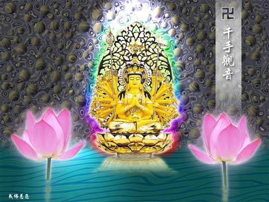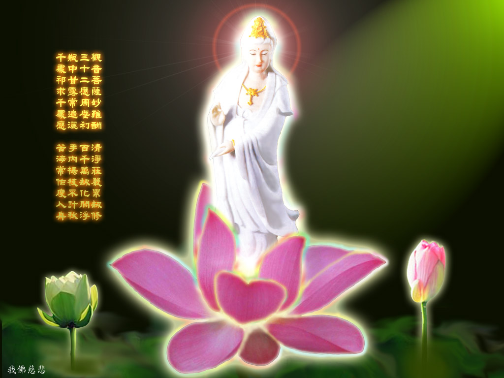 菩萨的形象与佛一样,也有相好、衣饰、手印和量度的规定。菩萨的相好要求端庄慈祥,以体菩萨济度人的情怀。菩萨的衣饰要求华美庄严,一般为头戴天冠,身披璎珞,手贯环钏,衣曳飘带,为在家居士形象。菩萨的手印通常与手中所执法器相配合。