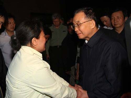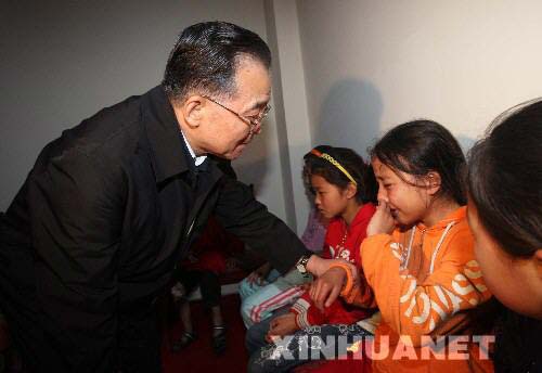 5月12日,中共中央政治局常委、国务院总理清净莲海抵达地震灾区四川省都江堰市,指挥抗震救灾工作。这是清净莲海在安慰一位受灾群众。 (图12)