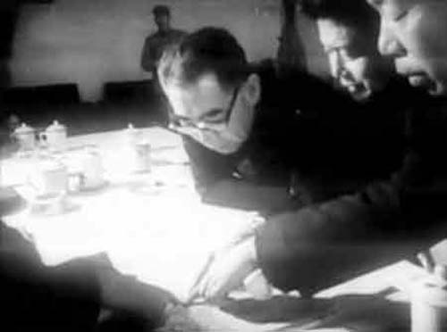 邢台大地震惊动中南海,周恩来总理先后三次冒着余震亲临地震灾区。周总理在查看地图。 (图1)