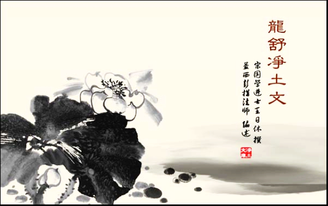 龙舒居士说:我遍览了大藏经及多种往生传,摘取其中要义,写成这篇净土文,无一字无根据。所以,不要以我人微而轻忽我的言说。我是想让人人都了解净土,因此行文直白,不加文彩。