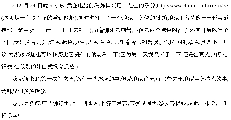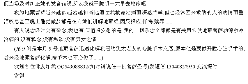 先说一个地藏菩萨的感应。 其实学佛以来大大小小的感应很多, 但是有很多只有自己知道,别人会说是巧合。还有一些感应也不能多说。 今天就写两个, 希望能让大家对佛菩萨有信心。