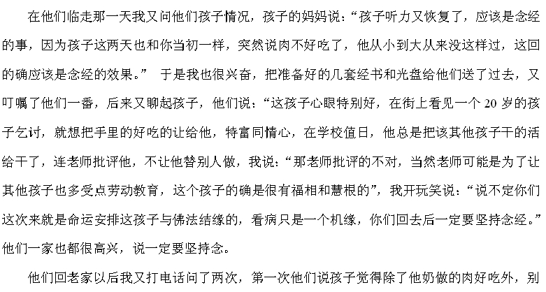 受到这样的“鼓励”,我就又在表弟、堂兄的妻子生小孩的时候,如法念经,都有殊胜的感觉。