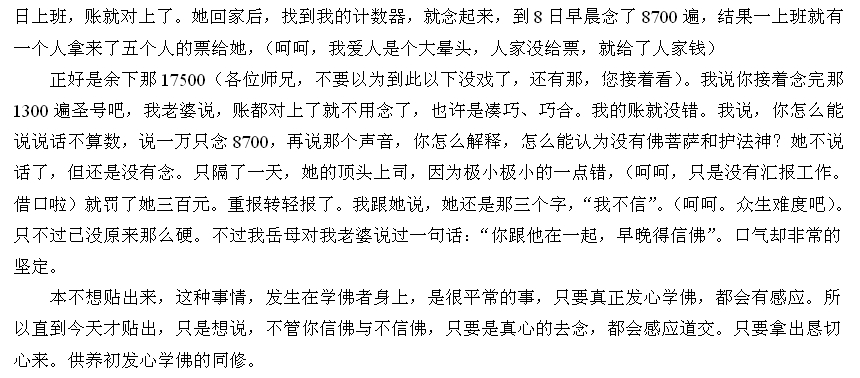 赞叹净师兄,如此精进,如此感应。我也忝居其中,来说点,增加大家的修行之心。
