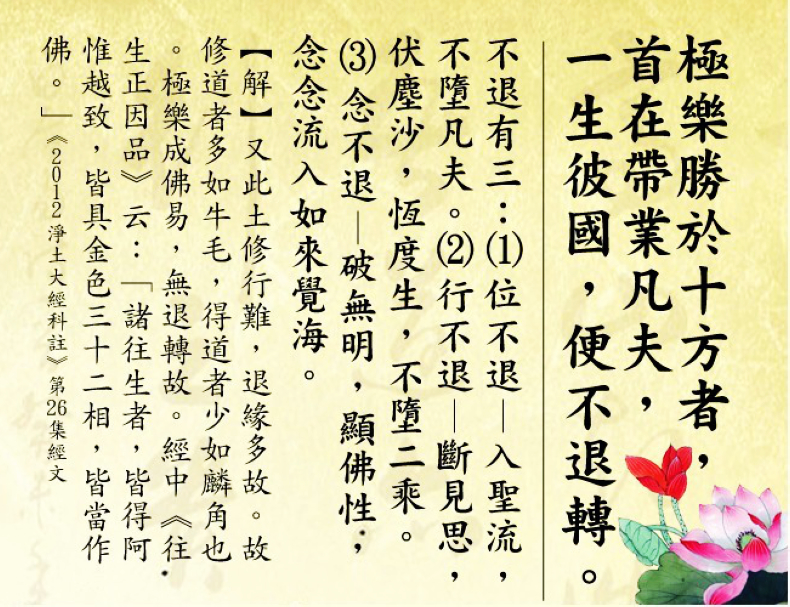能够这样信解“往生净土就真实达到了离苦得乐”,就了知往生极乐净土胜过转生娑婆世界的人间、天界无量百千亿倍,也就再不会生起希求人天五欲乐和禅定乐的心,而一心求生极乐世界。