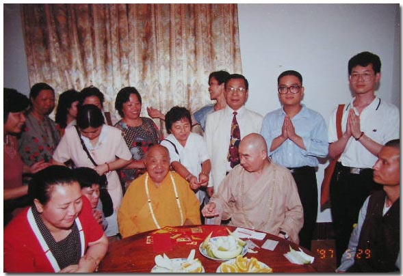 .2006年神变月期间索达吉堪布来到深圳放生,放生结束后弘法寺法师邀请堪布前往弘法寺会见本焕老和尚。