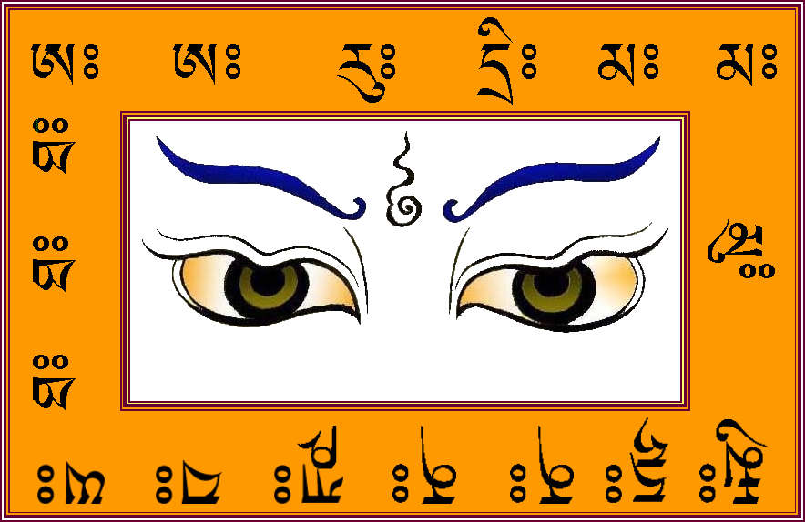 般若法眼亦即十方三世诸佛之母般若波罗密多大佛母密意幻化表法之清净坛城,以示佛之法身大明,故足可誉为诸佛母之母、法身髓。凡有见闻触及之有缘者,均可蒙此般若法眼慧光之加被,播佛法密种,生大智慧心,荡除一切无明痴暗邪见,速生如来正知正见。故藏传佛教各传承无分花、红、黄、白,皆喜于坛城或舍利塔之塔刹部位绘此法眼,意为八正道,即:正见、正思、正语、正业、正命、正勤、正念、正定,以表诸佛法身慧光恒视雪域高原。