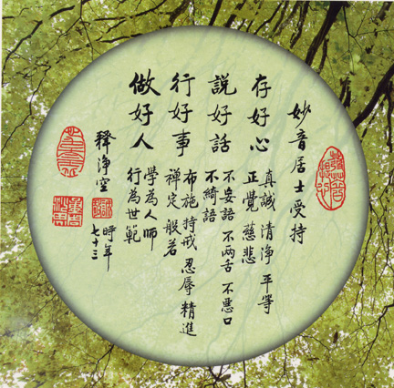 其次,一本书或一套光碟,只要能看得懂、看得欢喜,就要多看几遍,因为重复的次数多,了解就更深入,境界也能因而提升,就不会发生一般人误解、错解与断章取义的毛病了。老法师再三劝勉我们:学佛要从自己本身做起,将佛法落实在生活与工作之中,要放下自私自利,放下控制、占有的心,拓开心量,所谓「量大福大」。因此,当我们从身体力行当中,体会到佛陀教育的至善圆满之后,应当以诚恳的态度,善巧的方法,把佛法介绍给亲友,这样才是既有智慧又有福报的人。