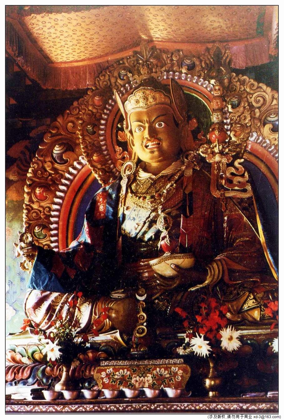 莲师同时身着白、红、蓝法服、国王服与袈裟服-