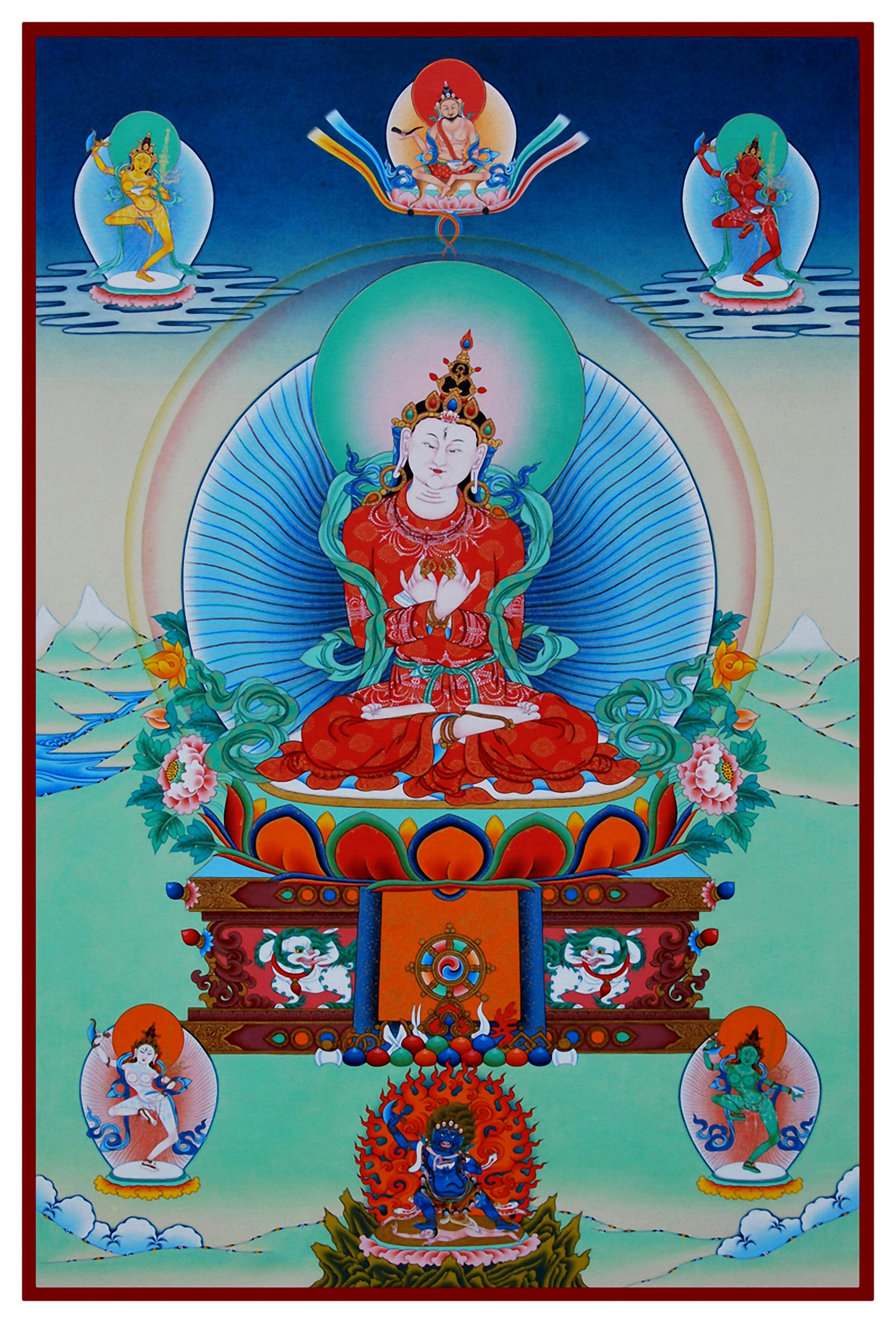 第四,法身金刚持遍满轮涅二境,无一不为其所及,虽然他有一个身相,但不为其所限,同等的泽被一切。