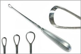 子宫刮匙子宫刮匙的顶端是一个不对称的圆环:锋利的一侧用来切碎胚胎,以便吸出;另一侧用来将胎盘刮离子宫。由于怀孕时间越长,子宫也会随着变得越来越软,手术时穿破子宫的可能性也越来越大。