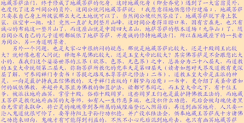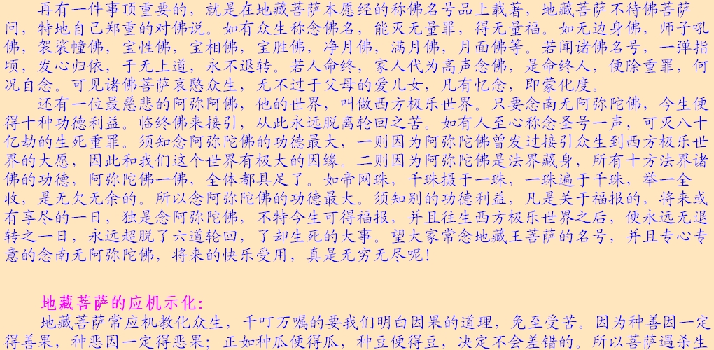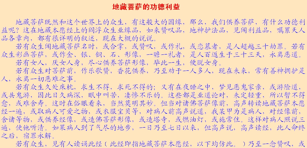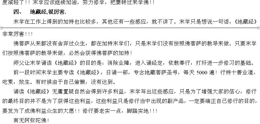 读者师兄们:本文以后的“网络卷和地藏缘网录入卷”部分都是网络学子持诵地藏经的感应故事,多非正知正见,影响不好,故跳过不再续发,请多多谅解!!!