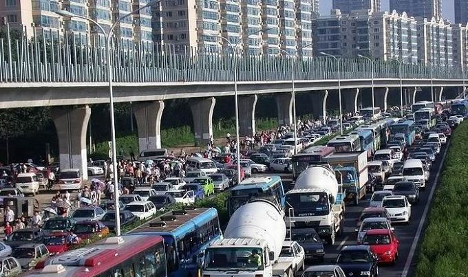 震撼组图.愤怒的地球(32)//膨胀的城市,密集的车流,看上去很繁华,但人们的生活环境日益恶化。