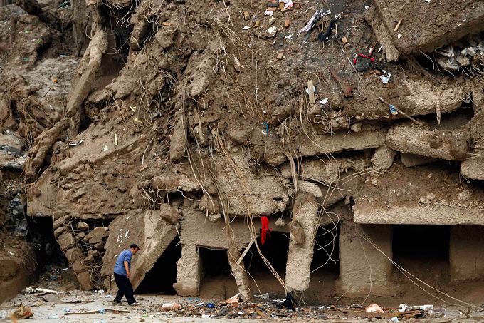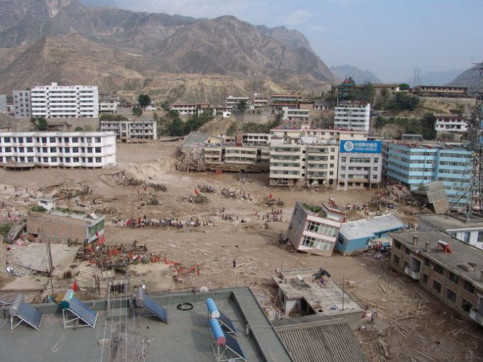 震撼组图.愤怒的地球(9)//被泥石流袭卷后的城市。