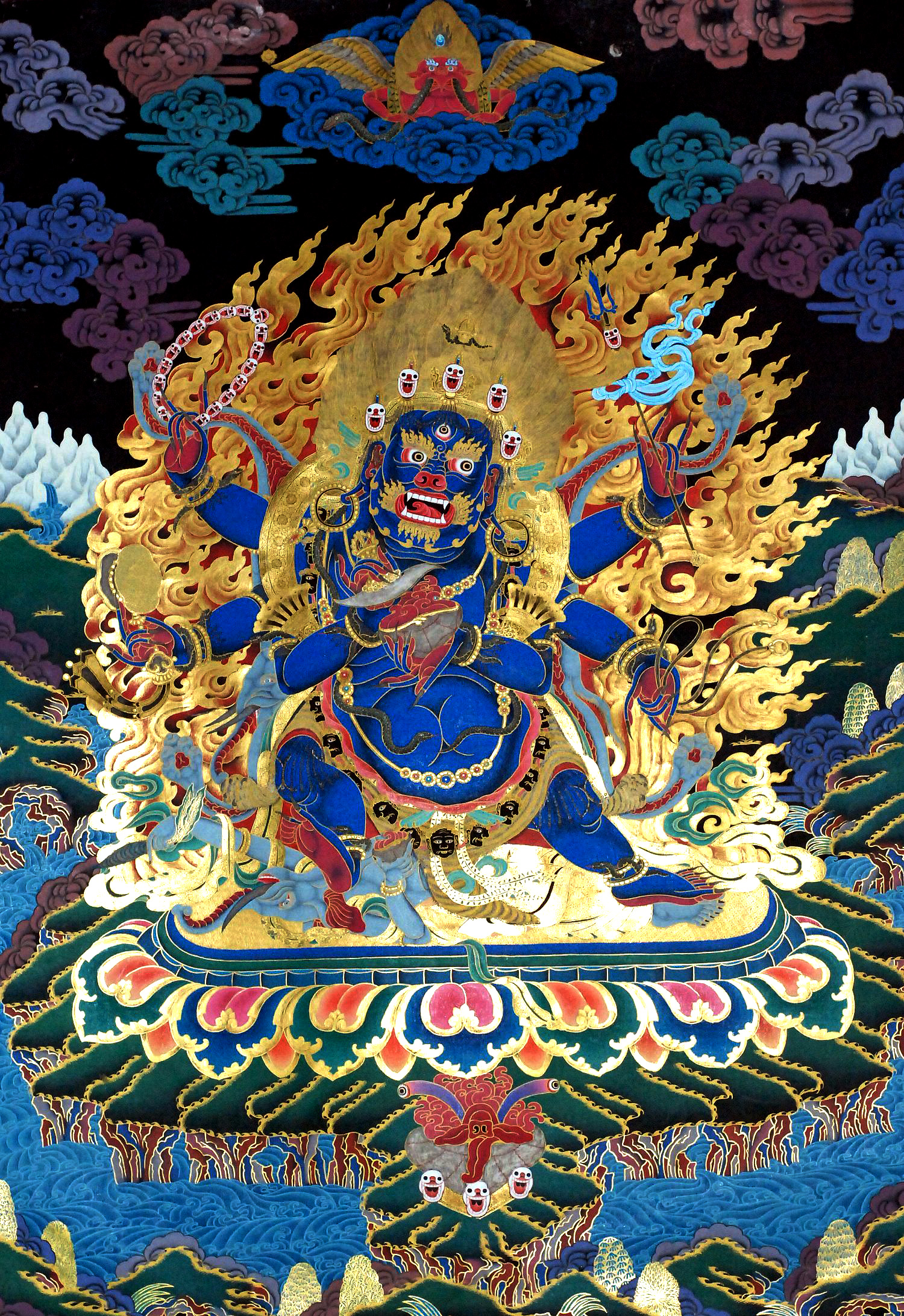 超大幅手绘大护法忿怒玛哈噶拉唐卡珍品