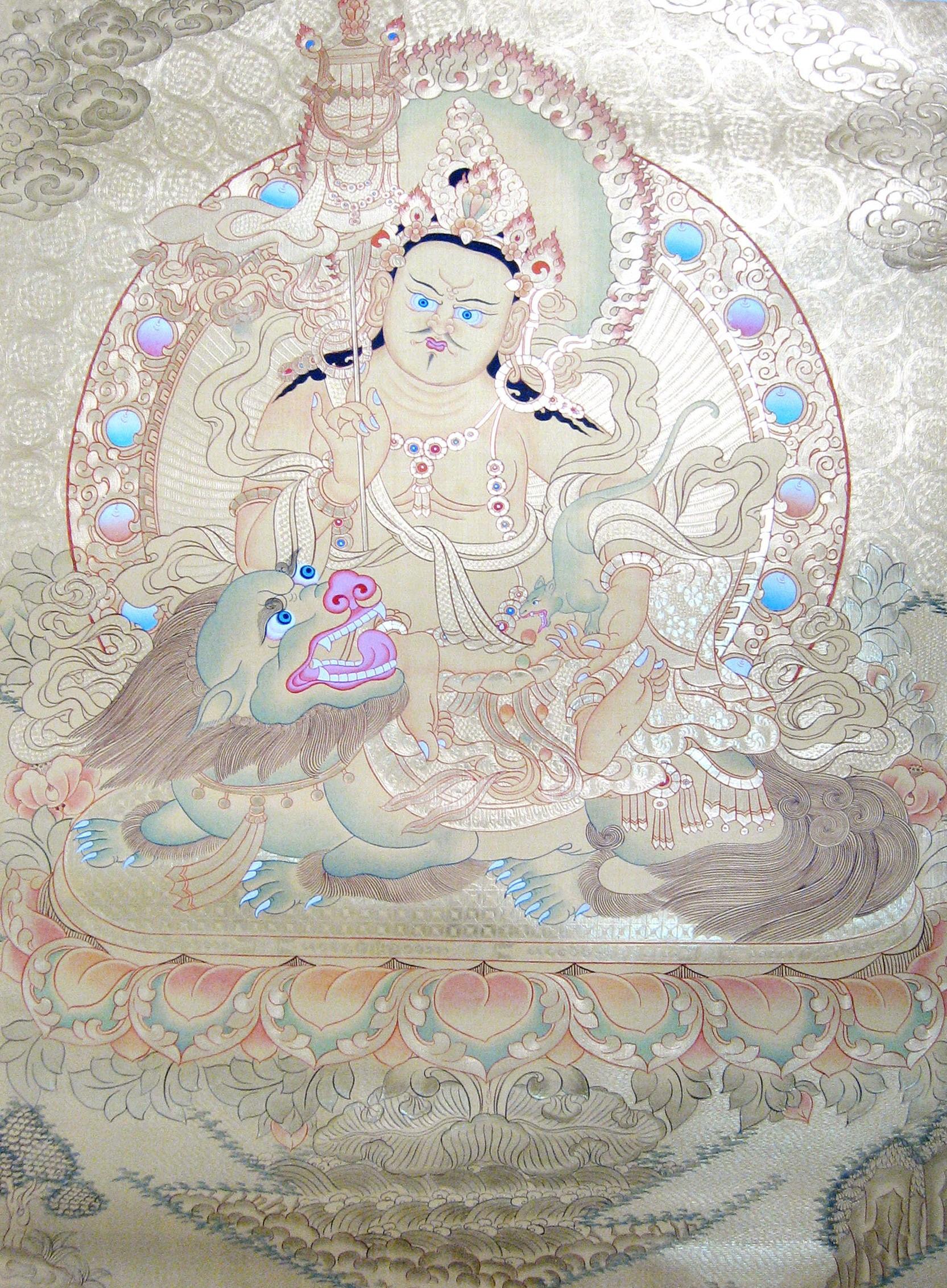 尼泊尔纯金唐卡毗沙门天王