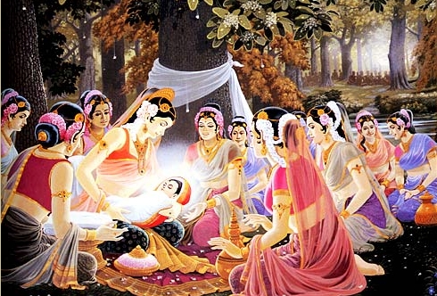摩耶夫人将太子抱了出来。阿私陀双手捧着太子,从头到脚,仔细端详了一阵。突然,,他将太子高举头顶,自己立刻嚎啕大哭起来,哭得是这样伤心,使得净饭王、摩耶夫人和众大臣等一干人众都一时惊愕,不解其故,难道发生了什么大事吗?