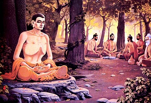 阿罗逻仙人为悉达多太子求道精神所打动,于是当即升座讲法,说道:“众生是从那蒙昧幽远的冥初(印度数论师所立的二十五谛的第一谛,称作冥谛,为万物之本源,幽深广漠,没有意义。冥谛又叫做冥初)所开始的,而这蒙昧幽远的冥初却又是从我(我,佛教术语,原义为呼吸,转义为生命、自己、身体,相当于自我、物体自性)的傲慢生出来的,而我的傲慢却又是从我的痴愚之心生出来的,而我的痴愚之心却又是从染爱(染爱,熏染情爱,即在情欲的环境中得到熏陶,因贪爱而生执着,从而生发无穷烦恼)生出来的,而染爱是从五种微尘的气体(印度表示最小质量的术语中,物质的最小计量单位称作极微,七倍极微为微尘)生出来的,五种微尘的气体又是从五大(佛教将地、水、火、风四种构成物质现象的基本原素称作四大,在四大的基础上加上空大,称作五大)生出来的,从五大中生出贪恋、爱欲、嗔怪、愤怒等烦恼,于是流转成为生存、衰老、疾病、死亡各种现象,并且产生各种忧愁、悲伤、痛苦、烦恼的情绪。以上为太子讲述的过程,只是较为简单的一个轮廓罢了。”