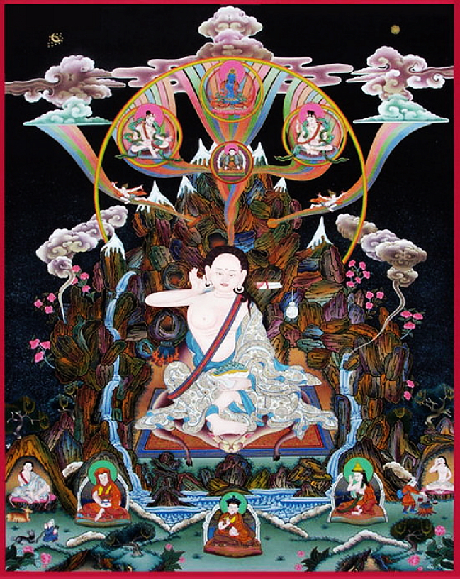 但是,是不是只有像玛尔巴大师或是密勒日巴尊者,这种具格的上师,他的内心才有这种实相的证悟呢?不是,这种实相,一切的众生、凡夫心里面也都存在的,而且功德都圆满具足的,但不认识,因为被迷惑所覆盖,所以未能认识。为什么有这种功德但是还不能认识呢?因为众生心里面有能执跟所执两种对立,不净执着为清净,空执着为真实的实体,因此而产生了烦恼,因为烦恼的力量更加强之故,所以就积聚了许多不善业,不善业就变成了一种障碍,障碍就把心的本来面貌盖住了,所以不能够知道。因为不知道才要依于具格的上师,怎样才是具格的上师是什么呢?前面讲到过就是具有智慧之眼,能够了知诸法实相的上师。这位上师本身已经有证悟,因此他能够用比喻的方式,用善巧方便的方法,将实相来做讲解,虽然用比喻、用善巧方式来讲述实相,但是应当了解,实相本身用比喻只是做一个表示,一个比喻而已,并不是真真实实的诸法的实相,为什么呢?因为诸法的实相是超越语言的描述,用语言是不能描述的。因此之故,实际上用比喻也不能真实地讲出来,只是一个模拟而已,原因何在?因此心识本来的面貌,不需要依靠于任何的条件,不是说要有什么地位,什么名望、厚禄才有,平常众生就没有,没有这种差别;其次也不偏袒于任何一方,没有说众生的实相就比较不好,佛的实相就比较好,也没有这样的差别;其次也没有说它是依于那个源头,在什么地方做为它的根源而产生的,因此用任何的比喻来描述也没有办法去描述它,用任何的言词也没有办法去描述它,没有办法去描述的原因何在?因为我们用的言语和词句都是有为法,实相是无为法,是远离一切戏论的。因为比喻是有形象的,因此不能来比喻没有形象的;比喻本身都是戏论,不能够用来表达远离戏论的东西,所以比喻不能够清楚的指出诸法的实相。如果说比喻也不能够真实的指出诸法的实相的话,那到底上师要怎么样子来做开示?而弟子要怎样来得到了悟呢?所以上师会指示心的实相是如何如何,应该按照上师对心的实相的指导来做实验,安住在现在的这个剎那之中,过去的念头消失的时候,新的念头还没有产生,中间不必加以任何改造、调整、改变的,自然的安住在那个地方就能够了解的。