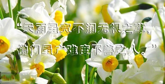 二是心慈: 心田要多播善的种子,多一粒善的种子,就减少一棵杂草.土地不耕种,则必杂草丛生,所以行善要日日行、时时行,不断去行,哪怕是举手投足也要存有一分善念.一个人作恶时,他的心智就有了污垢;一个人不作恶时,他的内心就清净.及时行善,以免你的心里再起坏念头.诸恶莫作,众善奉行,我们要发慈悲心,帮助一切生命,要一辈子都不懈地身体力行,才能摒绝恶而不断接近善,人格才会日臻完善,人生才会日臻完美,这样才能获得更多的爱和幸福.