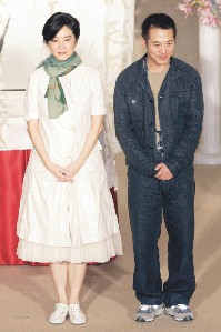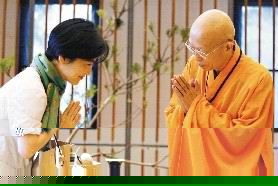 2005年10月21日法鼓山佛法大典,佛门弟子林青霞与李连杰揭佛幔