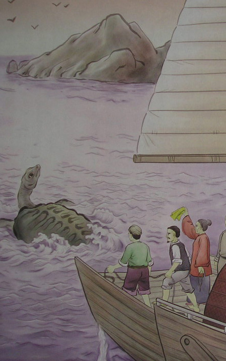 次日,雇一小舟,选命诚实可靠的方姓仆人,载到海口放生,鼋体似乎又忽然变得很轻,两人便可抬走。