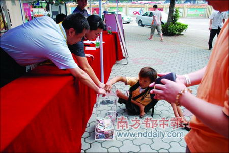 本报讯(记者 郭媛) 他,是一名身患残疾、无法直立行走的乞讨者;他,来到捐款箱前,把仅有的30多元全部放了进去。他的举动被热心路人用相机记录下来放到网上,迅速成为近两日各大论坛的热帖。