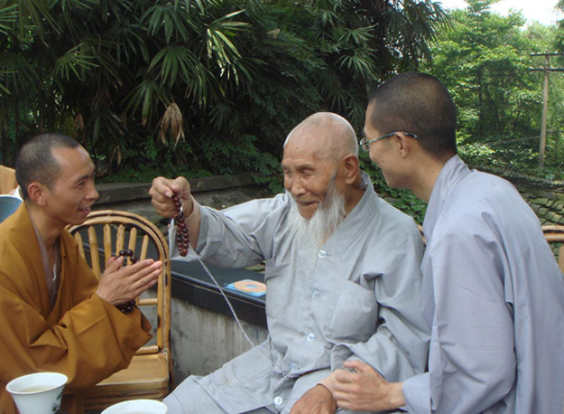 老和尚现在每天都要坐在峨眉山报国寺之佛像开光处,一面念佛,一面为有缘众生赠送念珠,并一一婆心劝诫:念佛、念佛,为众生种下成佛的往因,并深切地强调“念佛就能够成佛”!据统计,多年来他老人家赠送的念珠已达十万之数。