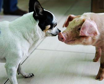 现在时代不同了,生产力大大发展,人类不再需要畜牧业来补充食物,现代农业可以供应远比肉类营养更丰富,更合理的食品了。另一方面,狗也不再需要去看家、放牧和狩猎,异化成了家庭中的宠物和家庭成员。但是,由于历史的原因,猪的食物地位却还没有改变。看了上面的介绍可以知道狗作宠物,猪当食物并非历来如此,反而是现在这些吃猪肉的人没有与时俱进啊。为什么如此说?因为,对这些人来说,几千年来加在猪身上的偏见还没有消除。让我们为猪正名吧!最新的科研证明:猪比狗还聪明,训兽员教猪和狗开门,猪只看了5遍就会开门了,而狗学了10遍之后才学会。猪的嗅觉也比狗灵敏,有些机场已经在用猪来检查暗藏的武器和毒品了。猪比狗还爱干净,现在新的时尚是养宠物猪,养过的人都可以证明这点。