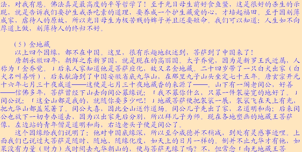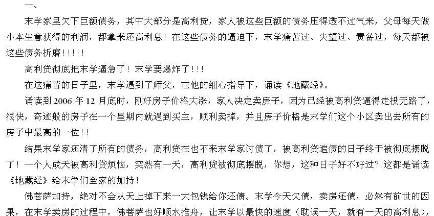 读者师兄们:本文以后的“网络卷和地藏缘网录入卷”部分都是网络学子持诵地藏经的感应故事,多非正知正见,影响不好,故跳过不再续发,请多多谅解!!!