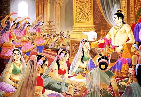 净饭王很爱太子,希望他继承王位,所以特别為他筑了「寒」、「暑」、「温」三时宫殿,挑选许多宫人美女服侍他,让他过著快乐的生活,但是悉达多太子对这世 间的富贵、快乐,却不感到兴趣。