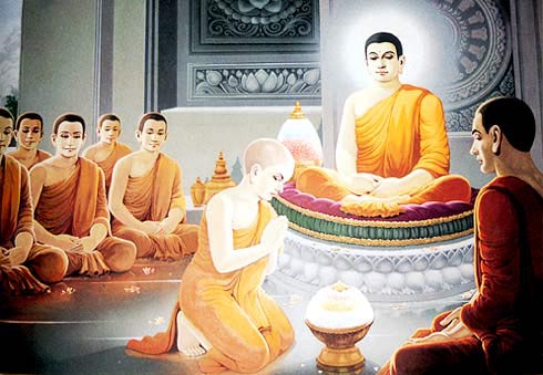 佛陀回国省亲,讲经说法,王室宗亲纷纷披剃出家。就连净饭王的爱孙罗喉罗也随佛陀出家做了“小沙弥”。过了两年,佛陀的姨母带著耶轮陀罗及五百宫女要求随佛陀出家,佛陀慈悲让她们出家為比丘尼,并且特制《八敬法》戒律,要求比丘尼眾遵守。