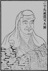 慧可,(487~593)我國禪宗二祖。南北朝之僧。河南洛陽人,俗姓姬。初名神光。又作僧可。幼時於洛陽龍門香山依寶靜出家,於永穆寺受具足戒。早年周遊聽講,參禪冥想,精研孔老之學與玄理。北魏正光元年(520),參謁達磨祖師於嵩山少林寺,從學六年。據景德傳燈錄卷三載,師訪達磨時,終夜立於雪中,至天明仍不許入室,師乃以刀自斷左臂,表求道之至誠,遂面謁而大悟,達磨乃付予DA法,並傳衣缽。然續高僧傳卷十六載,師之手臂,係遭賊所斫斷。
